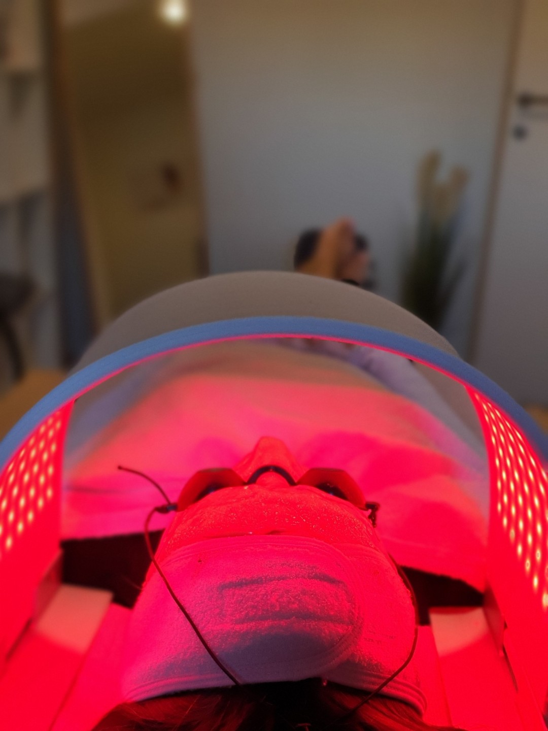 CRVENA (630nm)-potiče kožu na proizvodnju kolagena i elastina, što pomaže smanjiti bore i poboljšati čvrstoću kože. Djeluje protuupalno i smanjuje crvenilo.