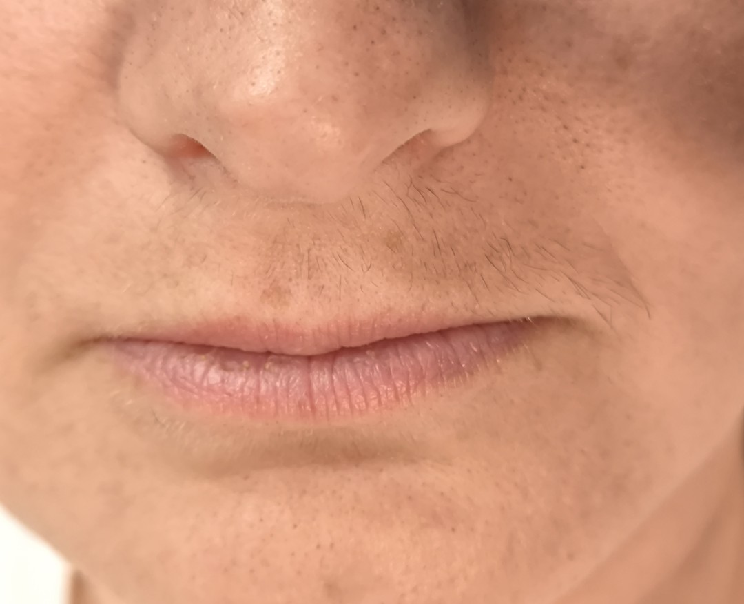 Dlačice na lijevoj strani nadusnice smo počupali koncem, a desni smo ostavili za usporedbu. Na slici se jasno vidi prednost čupanja koncem u odnosu na depilaciju voskom. Koža je glatka, bez iritacija i, što je najvažnije, bez dlačica. ❤️